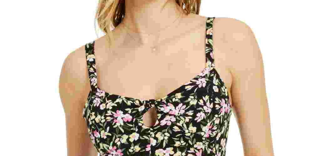 Scoop neckline with self-tie keyhole; hidden side zipper|Peplum hem; smocked at center back|Thin straps|Shell & lining: polyester|Machine washable
