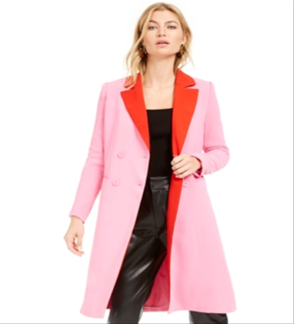 Bar III Women's Double-Breasted Duster Jacket Pink Size Large