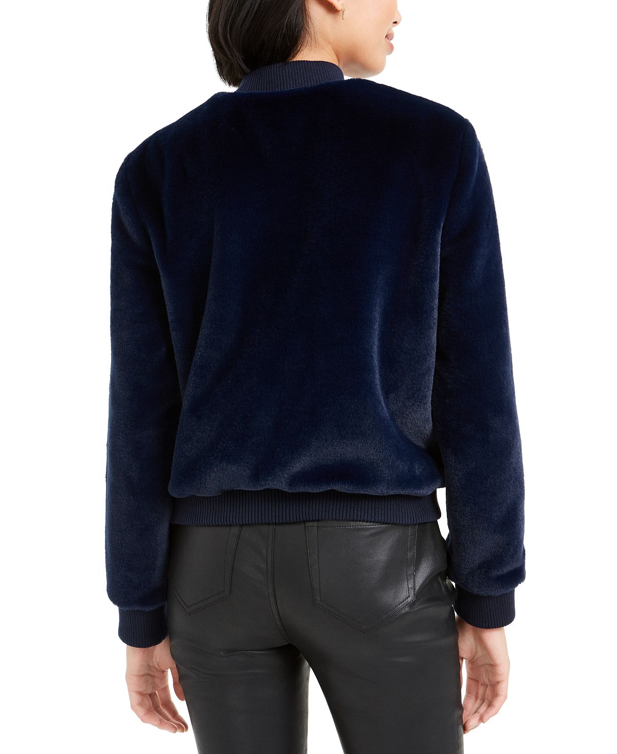 Bar III Women's Faux Fur Bomber Jacket Blue Size-XXS