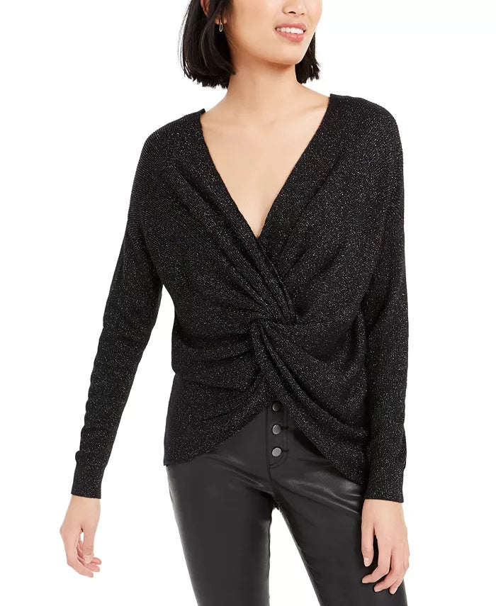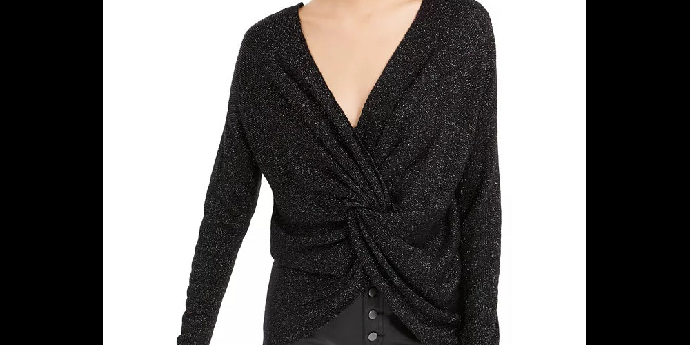 Approx. length: 16-22/25"|V-neck|Twist detail at back|Acrylic/nylon/polyester/metallic/wool|Machine washable