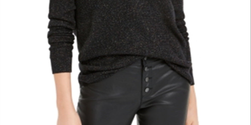 Bar III Women's Glitter Wear-2 Ways Sweater Black Size X-Large
