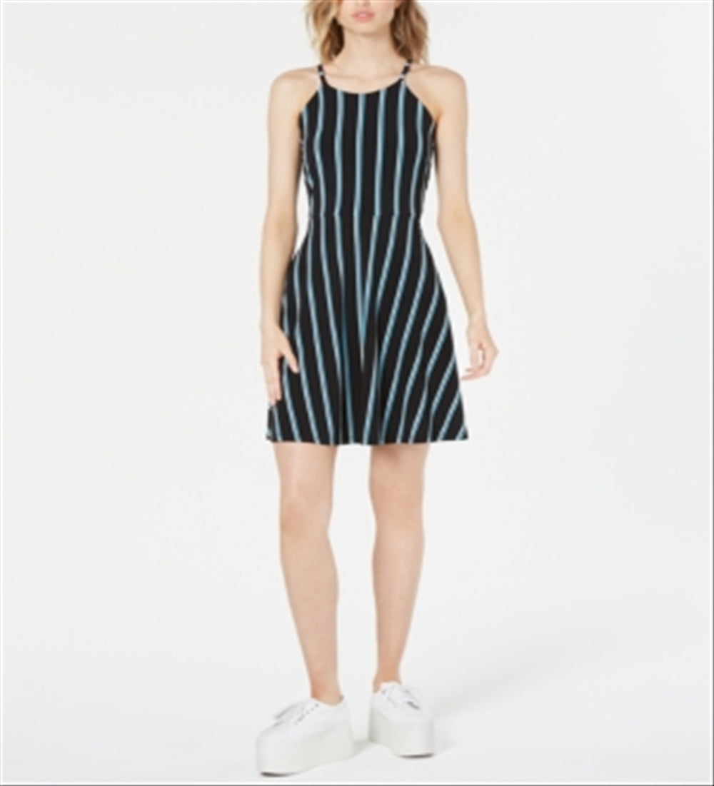 Bar III Women's Halter Striped Casual Dress Black Size Medium