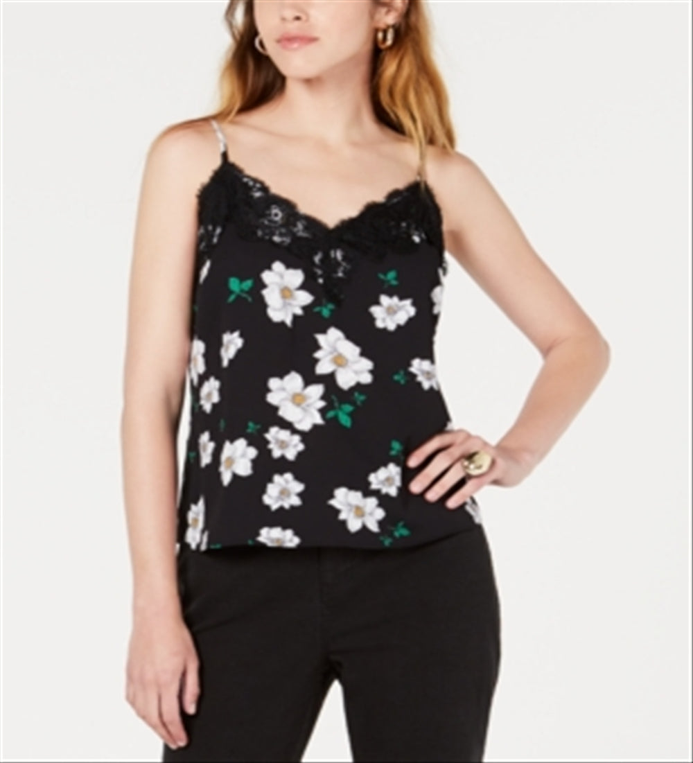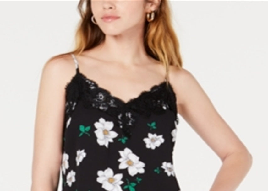 Bar III Women's Lace Floral Spaghetti Strap Tank Top Black Size Large