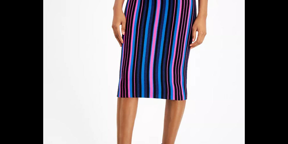Bar III Women's Pencil Skirt Metallic Striped Pencil Skirt Pink Size Small
