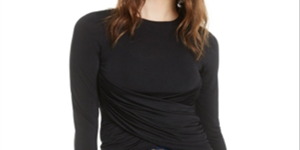 Bar III Women's Ruched Cross Over Blouse Black Size XXS