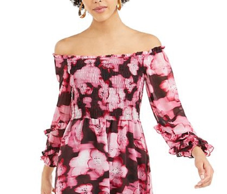 Bar III Women's Smocked Off the Shoulder Mini Dress Red Size XX-Large