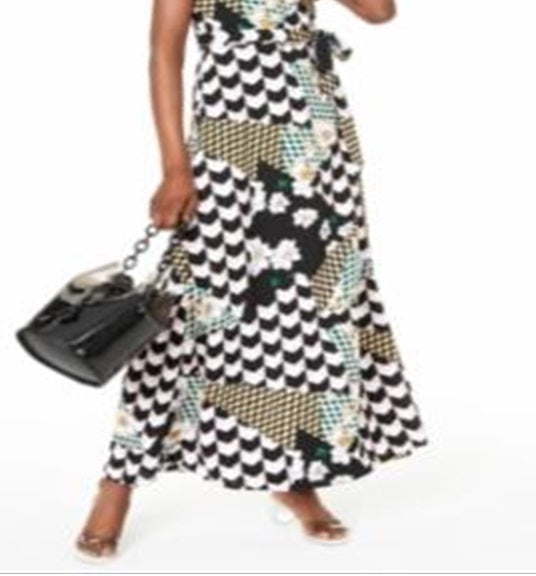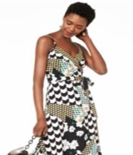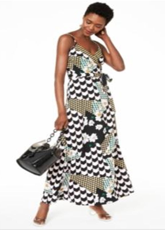 BAR III Women's Spaghetti Strap Full-Length Wrap Dress Dress Black Size XL