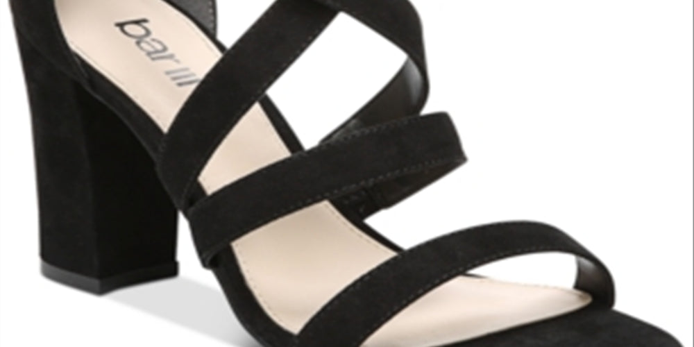 Bar III Women's Strappy Ankle Strap Padded Blythe Round Toe Block Heel Zip up Dress Sandals Black Size 9.5M