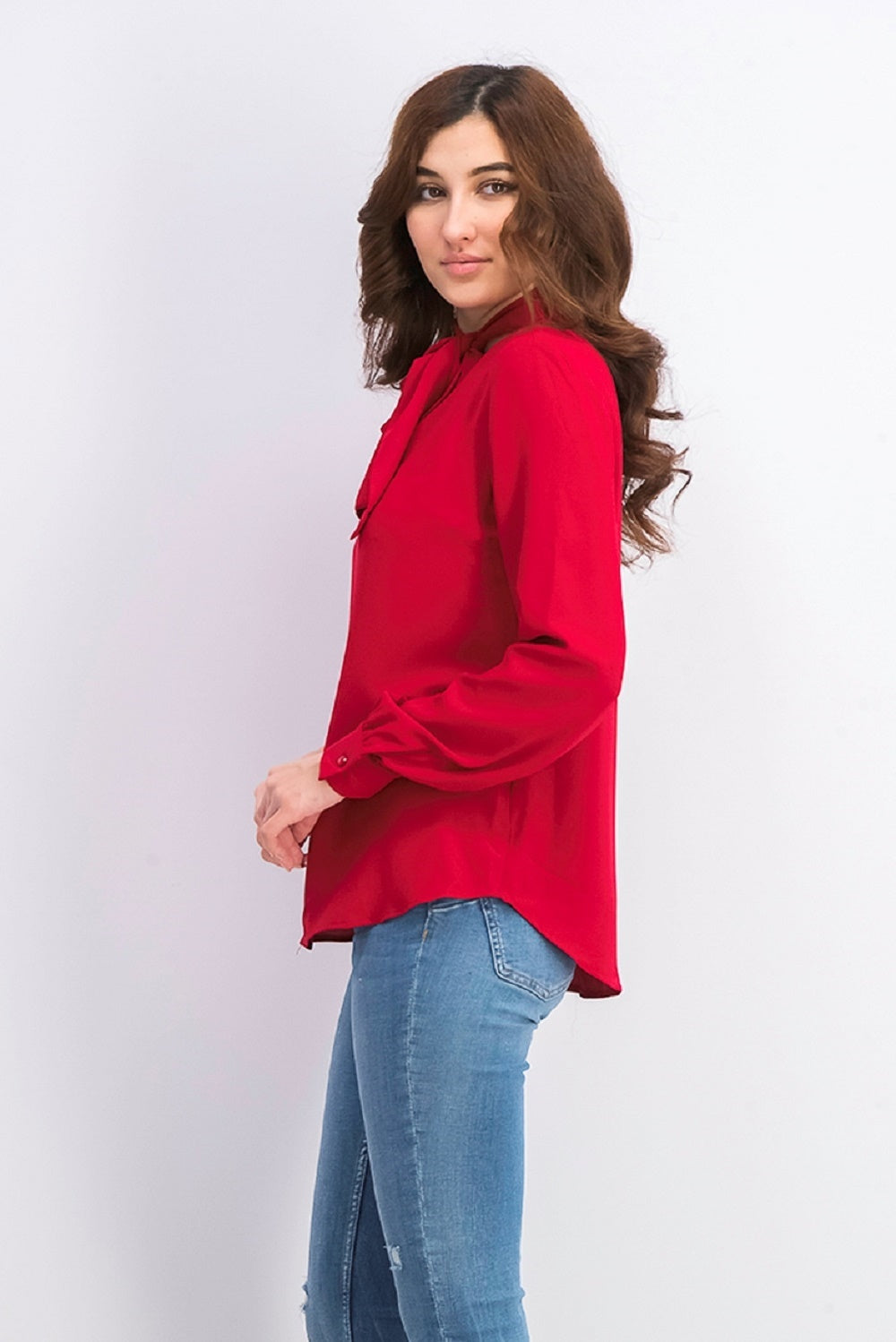 V-neck|Tie at neckline|Button cuffs at long sleeves|Polyester