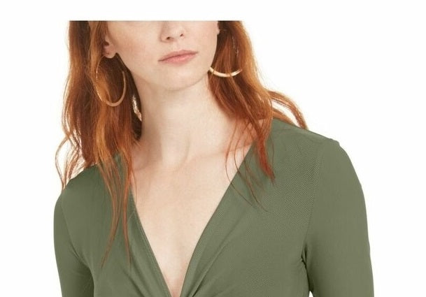 Bar III Women's Twisted Thong Bodysuit Green Size Small