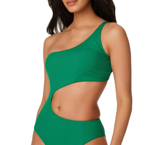 Bar III Women's Micro Rib One Shoulder Cutout One Piece Swimsuit Green Size Small