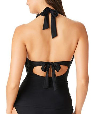Bar III Women's Plunging Cowlneck Halter Tankini Top Swimsuit Black Size Large