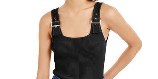 Bar III Women's V-Neck Flutter Cap-Sleeve Top Black Size X-Large