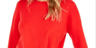 Bar III Women's Long Sleeve Crew Neck Sweater Red Size Large
