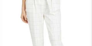 Bar III Women's Belted Windowpane Slim Straight Leg Pants White Size 16
