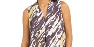 Bar III Women's Abstract Animal Print V Neck Blouse Black Size X-Large