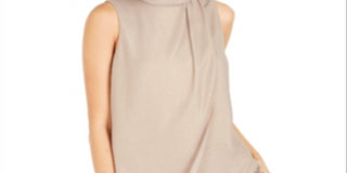 Bar III Women's Mock Neck Pleated Tank Top Beige Size Medium