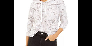 Bar III Women's Marble-Print Pullover Hoodie White Size Small