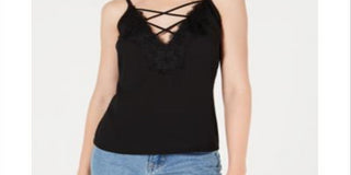 Bar III Women's Lace Trim Crisscross Camisole Black Size X-Small
