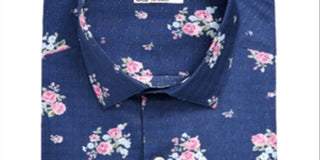 Bar III Men's Floral Print Stretch Button Down Shirt Blue Size L