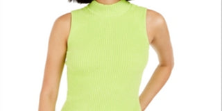 Bar III Women's Mock-Neck Sweater Tank Top Neon Green Size XL