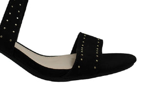 Bar III Women's Strappy Studded Padded Baylee Round Toe Block Heel Buckle Dress Sandals Black Size 8.5 M