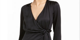 BAR III Women's Long Sleeve V Neck Faux Wrap Wear to Work Black Size M