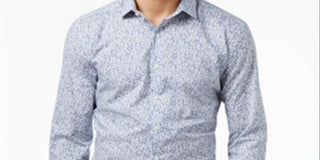 Bar III Men's Floral Collared Slim Fit Dress Shirt Blue Size 15X32X33