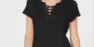 Bar III Women's Lace up Short Sleeve Blouse Black Size S