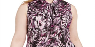 Bar III Women's Trendy Plus Printed Tie Neck Top Purple Size 3X