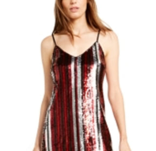 Bar III Women's Sequined Striped Spaghetti Strap V Neck Short Shift Party Dress Black Size XX-Small