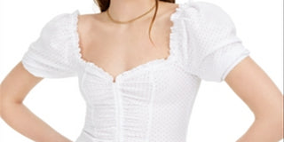Bar III Women's Eyelet Puff Sleeve Top White Size X-Large