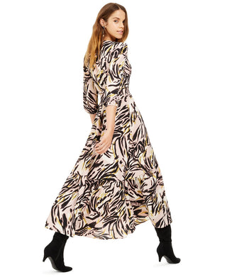 Bar III Women's Animal Print 3/4 Sleeve V Neck Maxi Wrap Dress Pink Size XXS