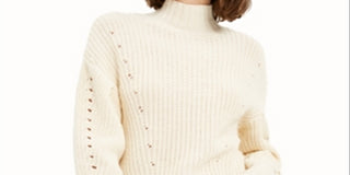 Bar III Women's Long Sleeve Turtle Neck Sweater Cream Size Large