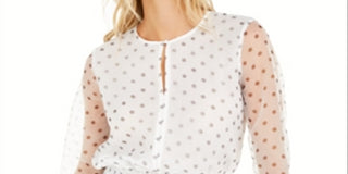 Bar III Women's Polka Dot Smocked Waist Top White Size Small