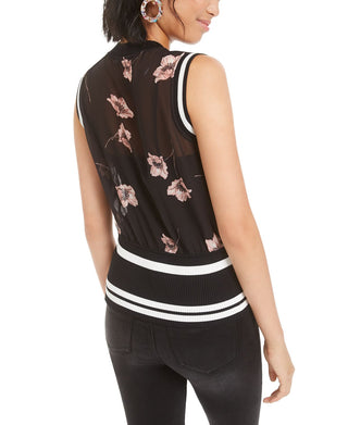 Bar III Women's Semi-Sheer Floral-Print Top Black Size Large