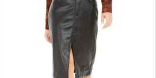 Bar III Women's Faux Leather Belted Slit Skirt Black Size -XL