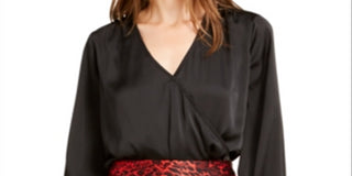 Bar III Women's Satin Blouson Thong Bodysuit Black Size Medium