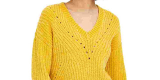 Bar III Women's Long Sleeve V Neck Sweater Yellow Size Small
