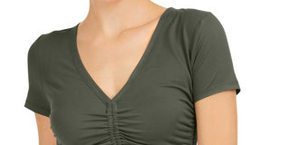 Bar III Women's Ruched Knit T-Shirt -Green Size S