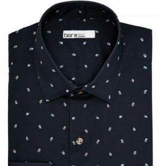 Bar III Men's Slim Fit Stretch Floral Dress Shirts Black Size 17 1/2