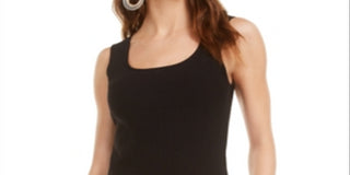 Bar III Women's Ribbed Knit Square Neck Tank Top Sweater Black Size X-Large