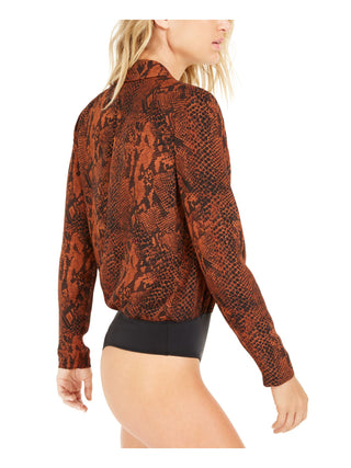 Bar III Women's Animal Print Wear to Work Bodysuit Orange Size X-Small