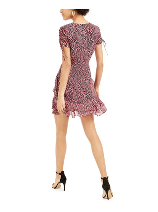 Bar III Women's Printed Ruffled Mini Dress Red Size 4