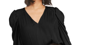 Bar III Women's Puff Sleeve V Neck Top Black Size Medium