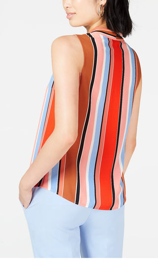 Bar III Women's Sleeveless V Neck Blouse Black Mult Size XS