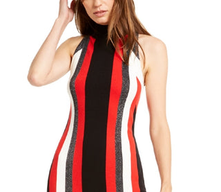 Bar III Women's Metallic-Stripe Sweater Dress Black Size X-Small