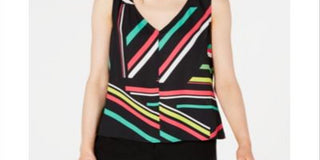 Bar III Women's Sleeveless V Neck Blouse Black Size X-Large