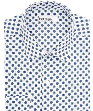 Bar III Men's Printed Collared Dress Shirt White Size 32X33