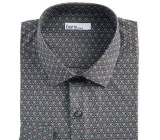 Bar III Men's Slim-Fit Stretch Art Deco Floral Dress Shirt Green Size S